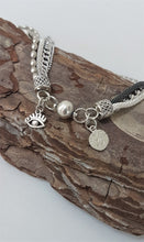 צמיד מתלפף בשילוב שרשראות ואלמנטים בציפוי כסף איכותי, נעשה בעבודת יד,